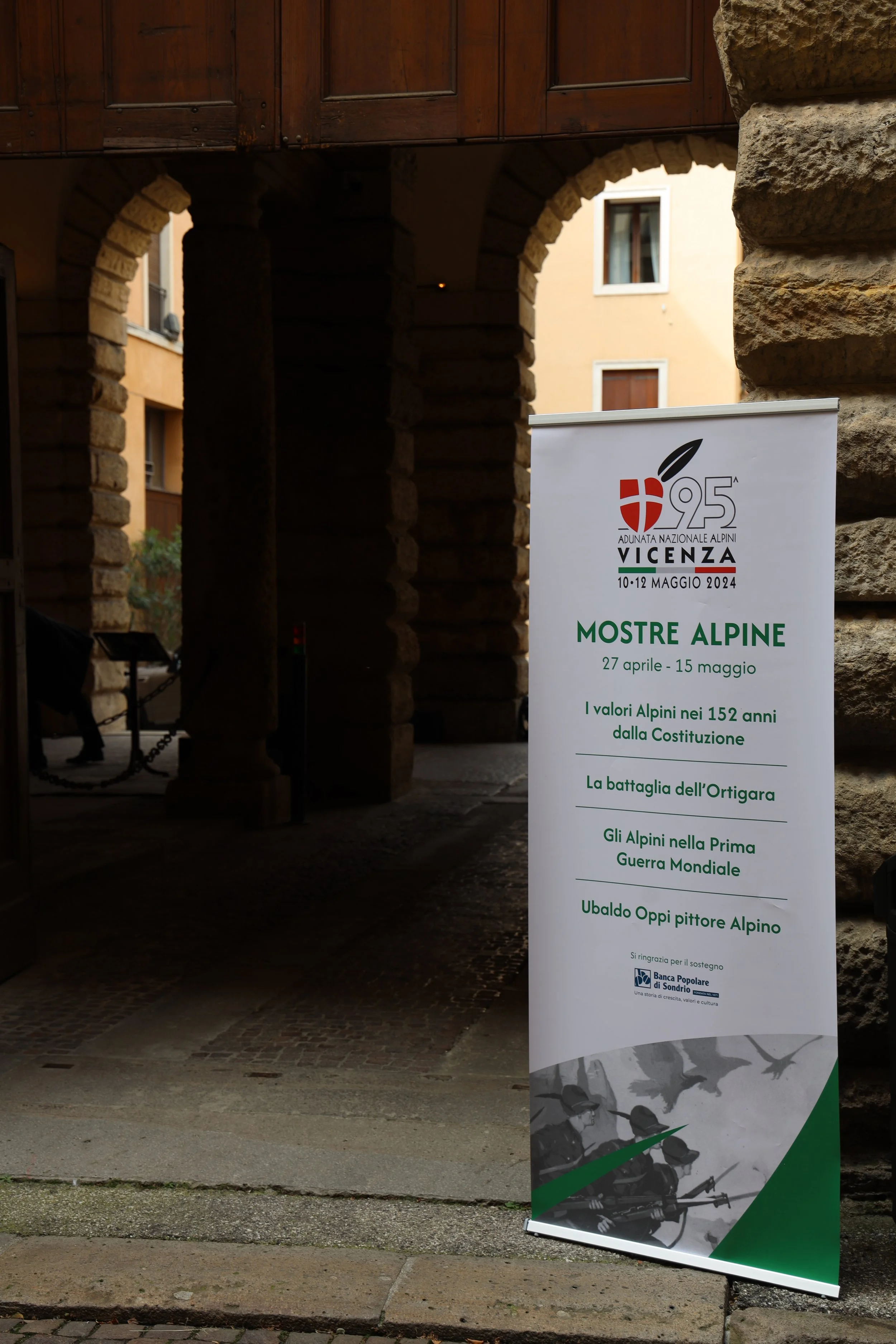 Una delegazione del Consiglio della Sezione “Tito Speri” della Sezione di Brescia dell’Unione Nazionale Ufficiali in Congedo d’Italia (UNUCI), guidata dal 1° Cap. Fant. (Ris.) Andrea Polo, ha visitato la mostra curata da Ruggero Dal Molin e Stefano Aluisini (Consigliere di UNUCI Brescia) esposta a Palazzo Thiene, prestigiosa location nel centro storico di Vicenza, inaugurata con successo il sabato precedente. La rassegna fotografica, dedicata alla battaglia dell’Ortigara, costituita da venti scatti riprodotti su forex di grande formato, di provenienza sia italiana che austro-ungarica, è stata messa a disposizione della città di Vicenza dall’Archivio Storico Dal Molin in occasione della 95^ Adunata Nazionale degli Alpini in memoria degli avi di Ruggero Dal Molin e Stefano Aluisini che combatterono tra le Penne Nere durante la Grande Guerra sull’Altopiano dei Sette Comuni. Nella prestigiosa cornice di Palazzo Thiene, a fianco della nostra mostra, quale sua naturale prosecuzione si trova anche quella curata dal Gen. Div. Stefano Basset (MBVM), già Direttore del Museo delle Truppe Alpine di Trento, e riguardante le montagne sulle quali gli Alpini scrissero pagine di Storia durante la Grande Guerra, costituita da venti roll-up con immagini d’epoca commentate.