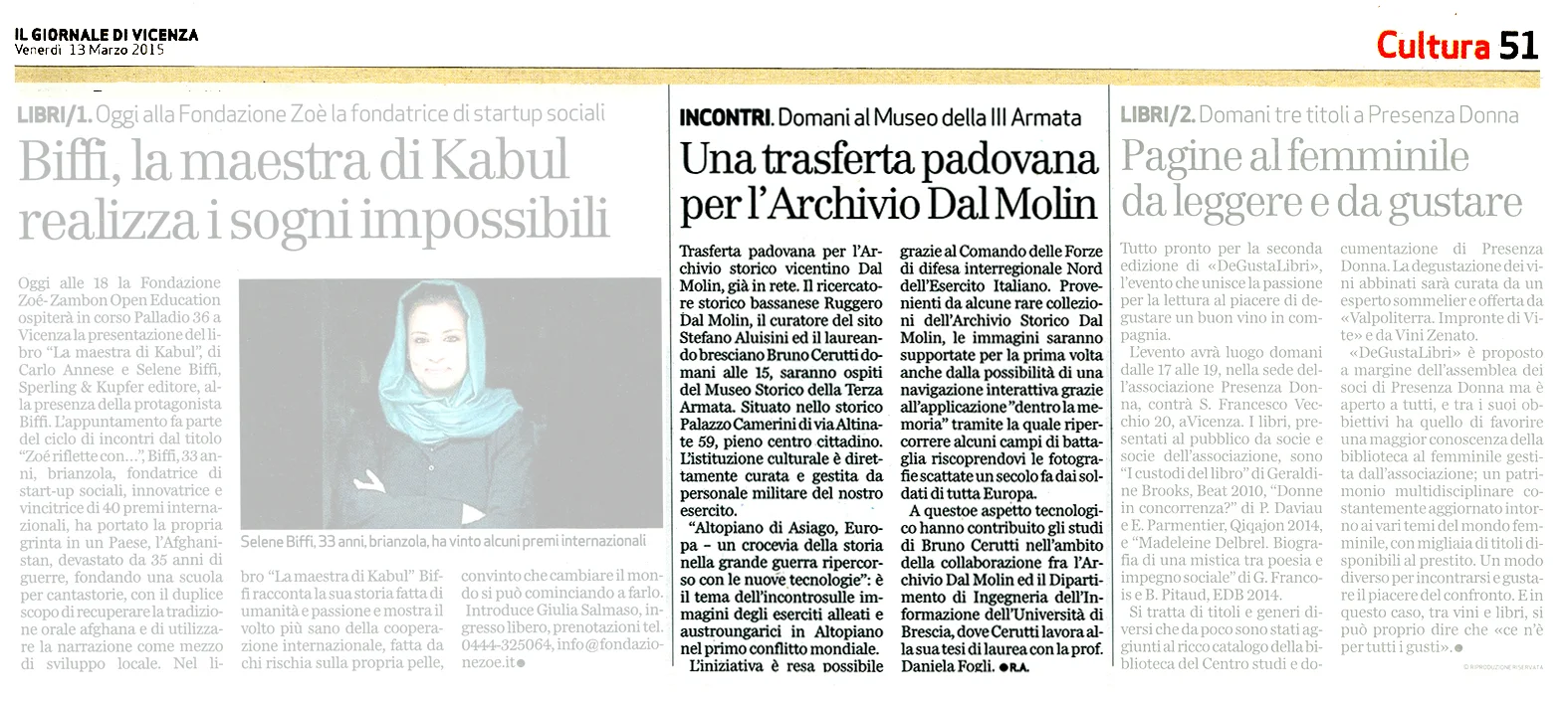 Un articolo di Renato Angonese su "Il Giornale di Vicenza" di venerdì 13 marzo 2015
