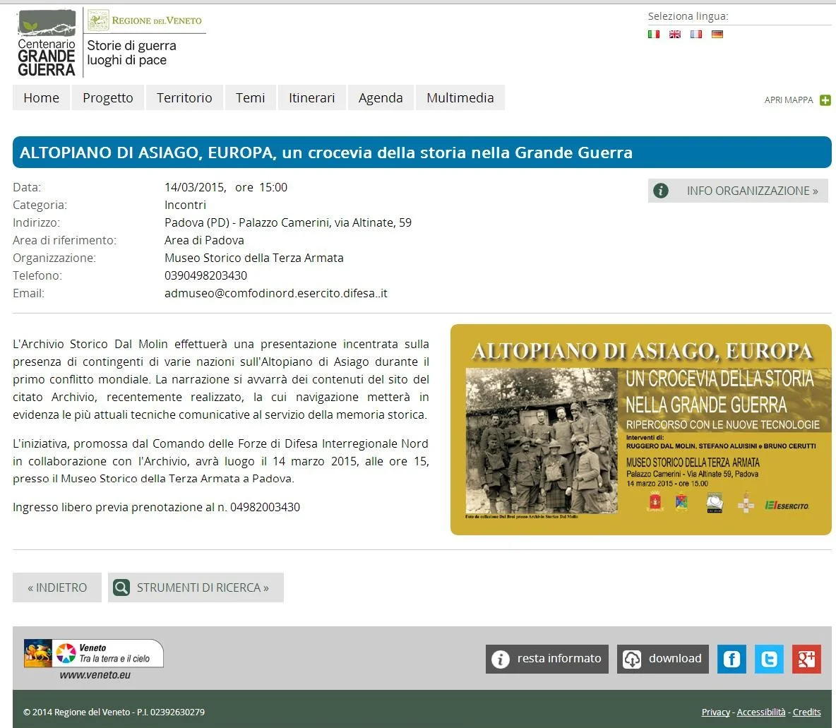 Dal numero di aprile 2015 del Web Magazine – Gazzetta della Spezia.it - La Grande Guerra al tempo del Web (dall'incontro presso il Museo Storico della Terza Armata di Padova a cura di Stefano Aluisini e Ruggero Dal Molin - Archivio Storico Dal Molin)