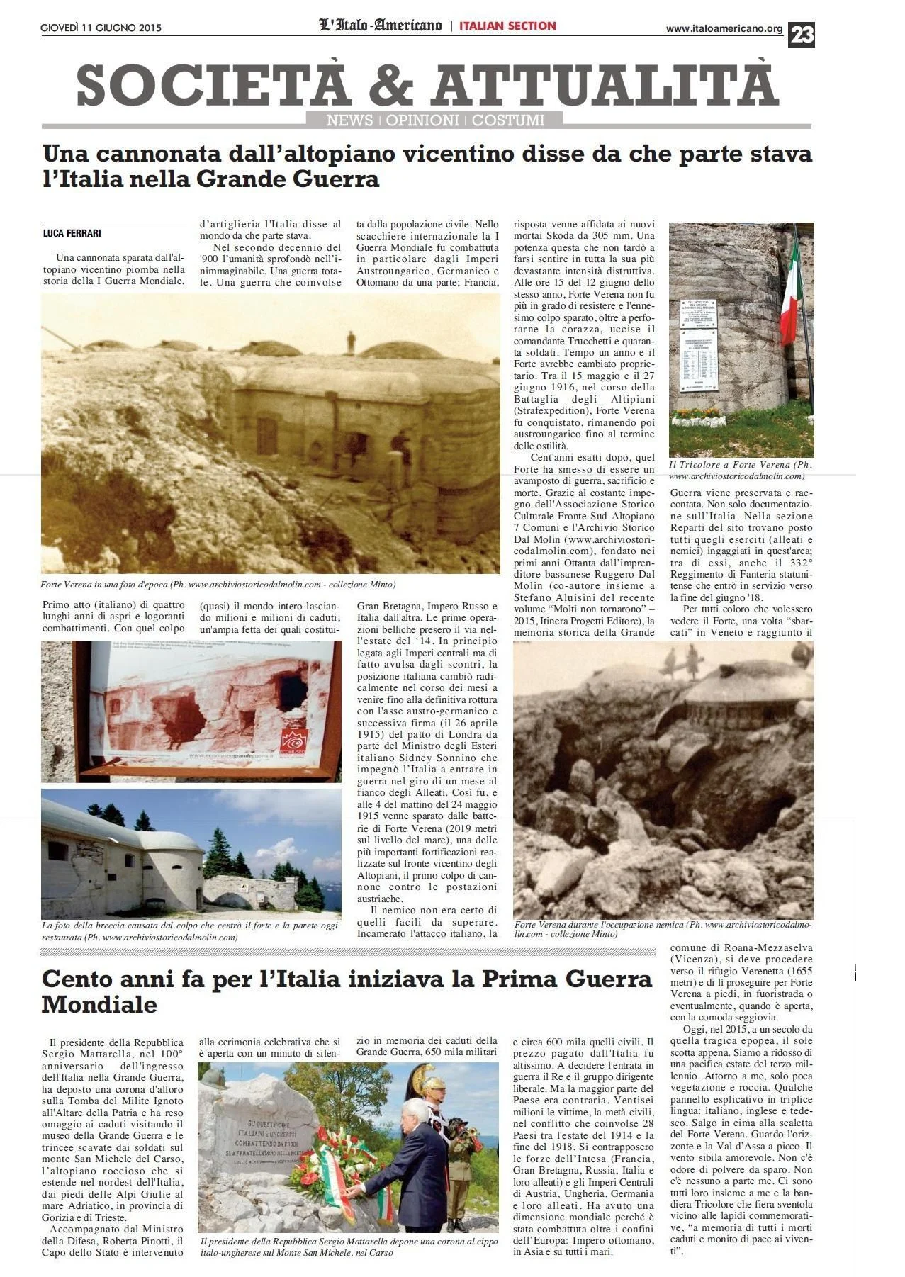 Dalla Rivista “L’Italo Americano” – citazione per “Molti non tornarono” di Stefano Aluisini e Ruggero Dal Molin e relativo sito internet Archivio Storico