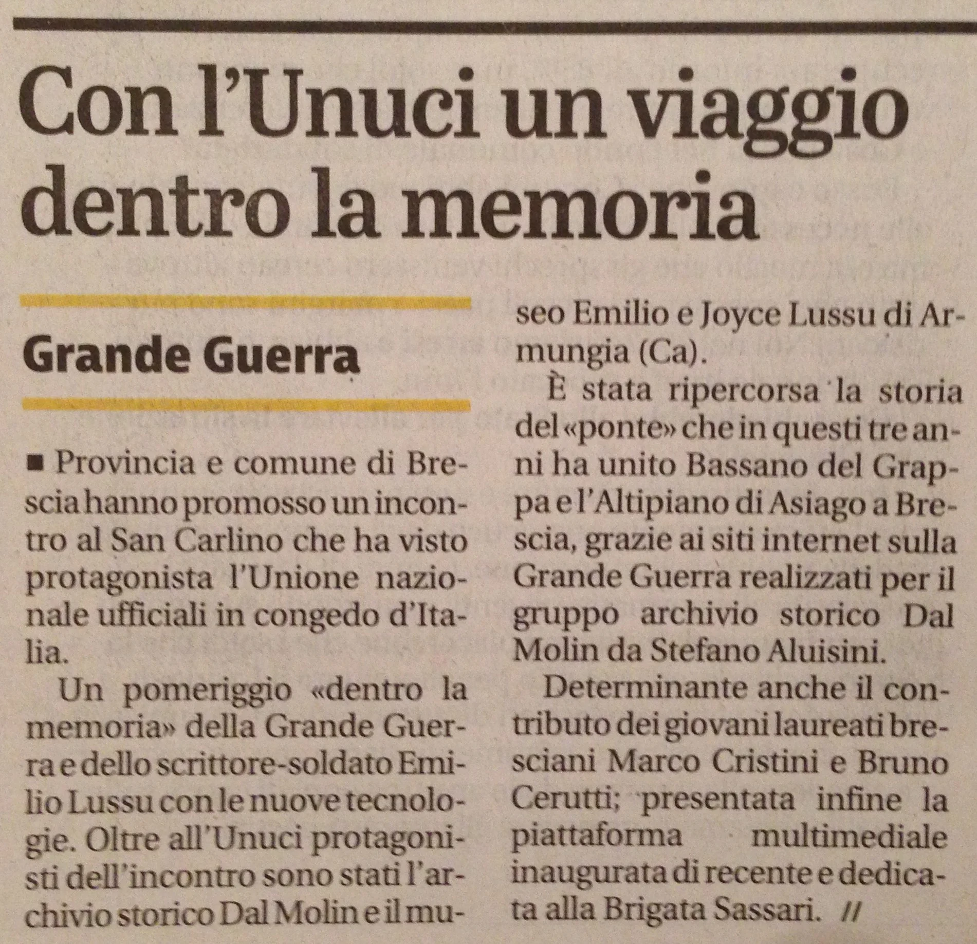 L’incontro “La Grande Guerra: storie di uomini fra letteratura e tecnologia” – da “Il Giornale di Brescia” del 10.11.2015