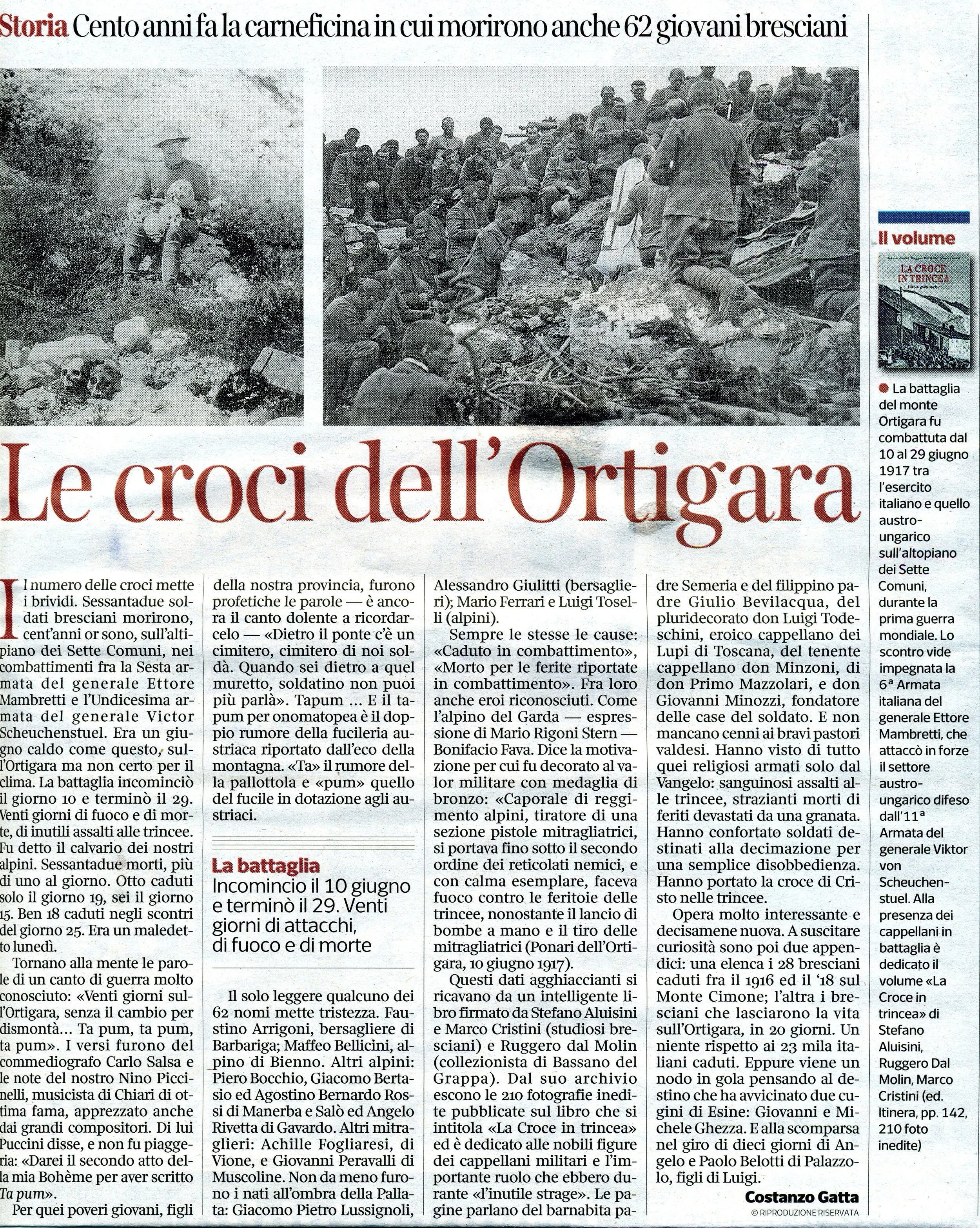 Un articolo sul libro "La Croce in Trincea" di Stefano Aluisini, Marco Cristini e Ruggero Dal Molin per il centenario della battaglia dell'Ortigara (giugno 1917)