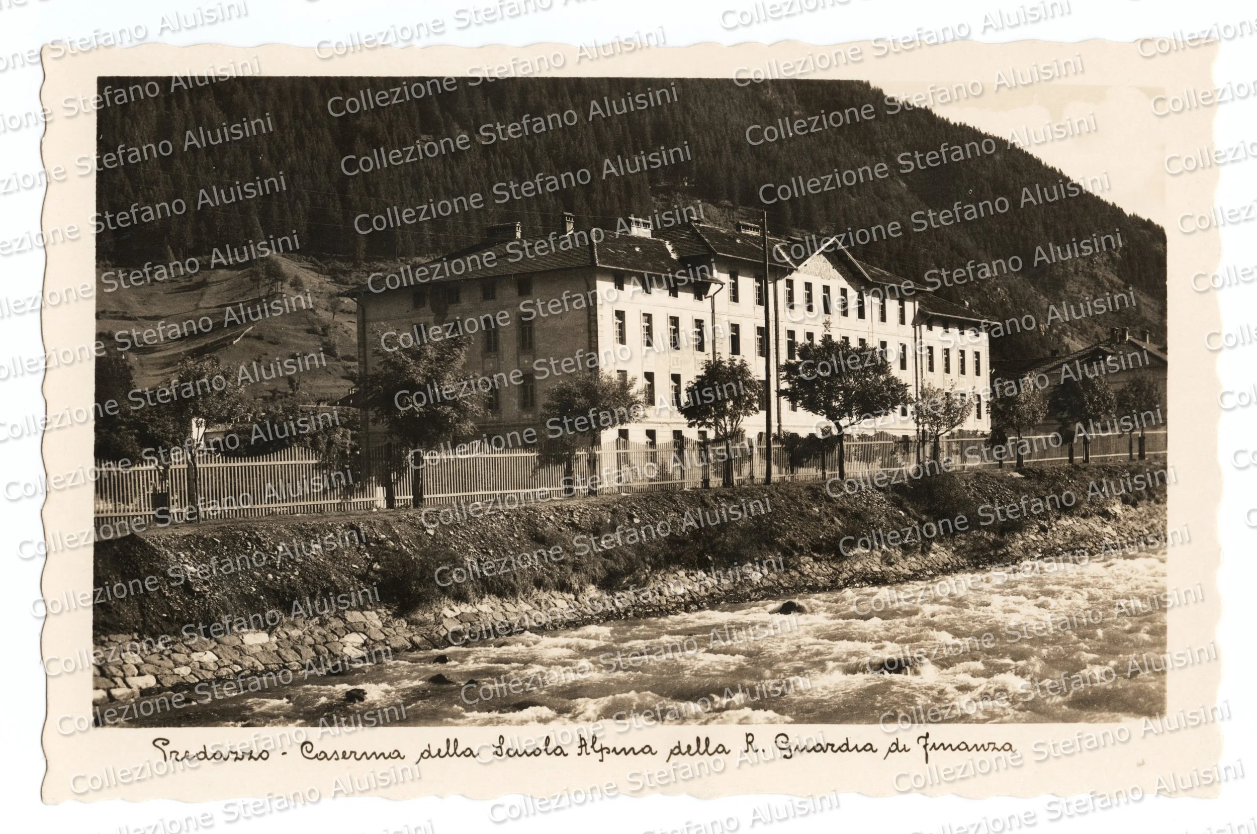 Classica immagine della Caserma “Macchi” della Scuola Alpina Regia Guardia di Finanza di Predazzo (Collezione Stefano Aluisini).
