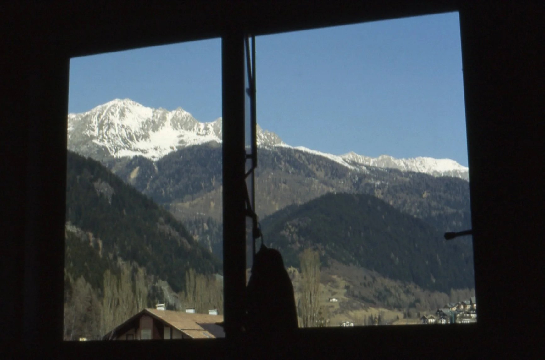 Sopra: immagini del primo giorno di servizio alla Scuola Alpina della Guardia di Finanza di Predazzo scattate dalla finestra della camerata dei Sottotenenti di Complemento (sotto)
