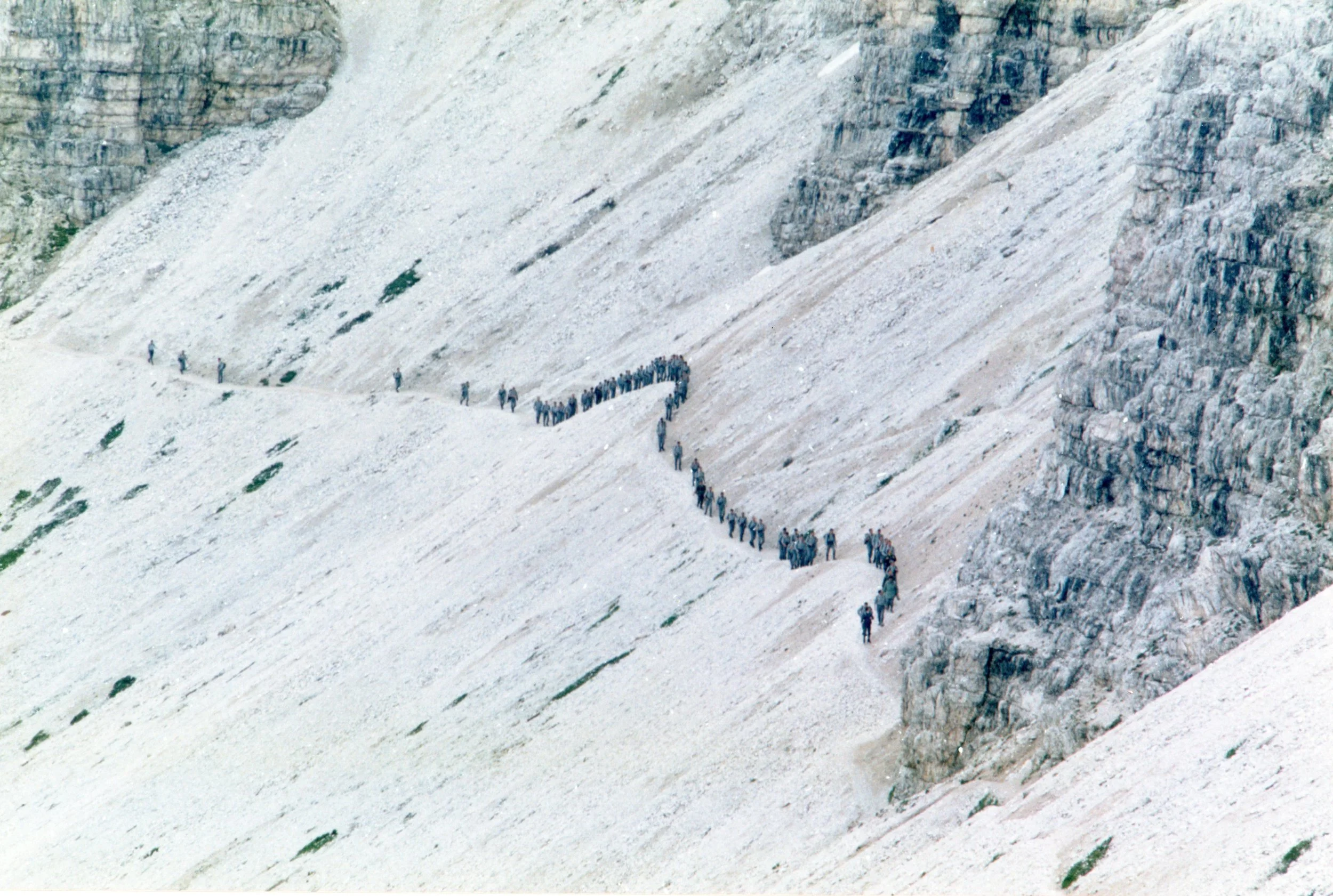 Ultime prove senza caricatore sul ghiaione della Val d’Oten per la successiva esercitazione a fuoco reale (luglio 1992).