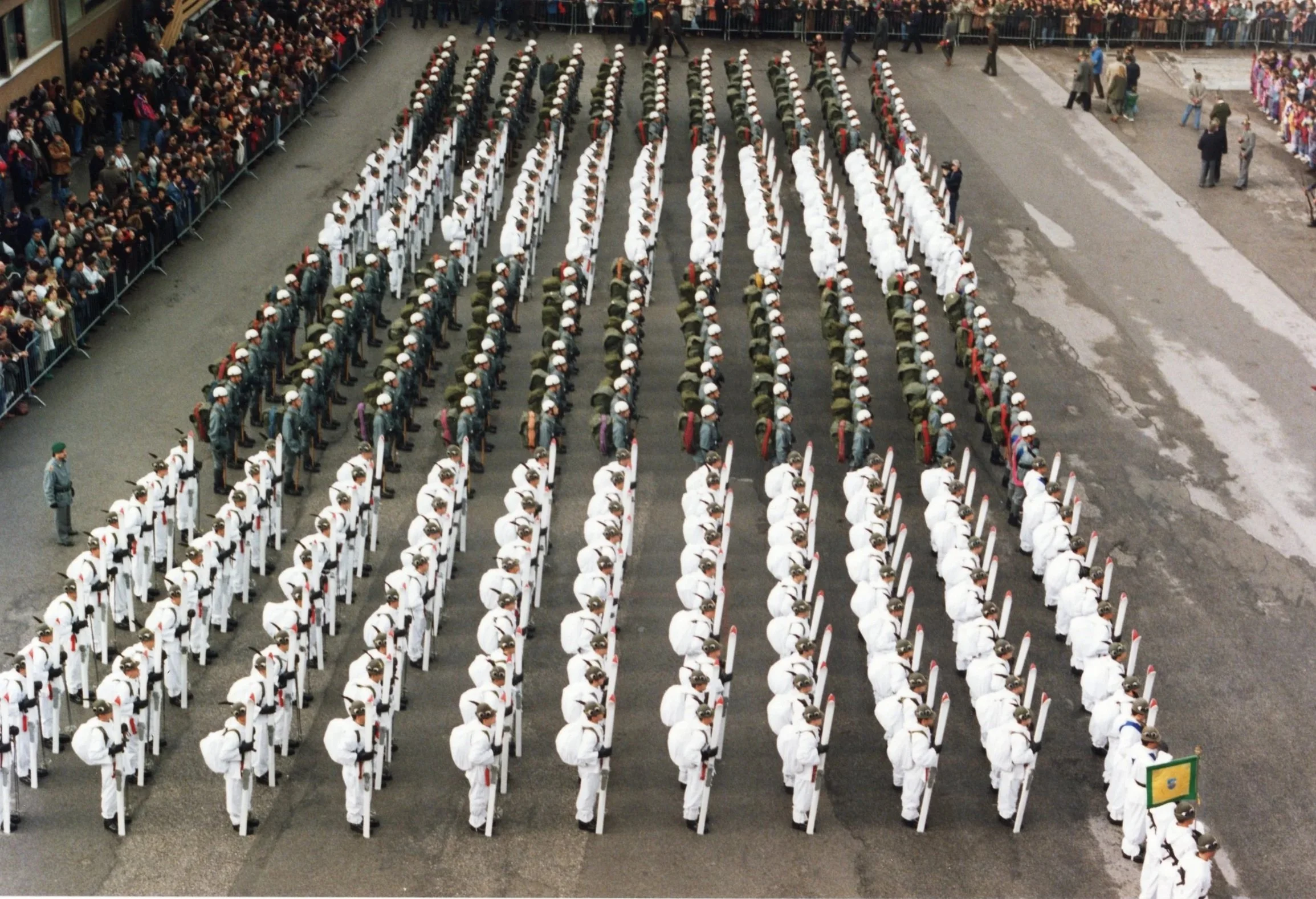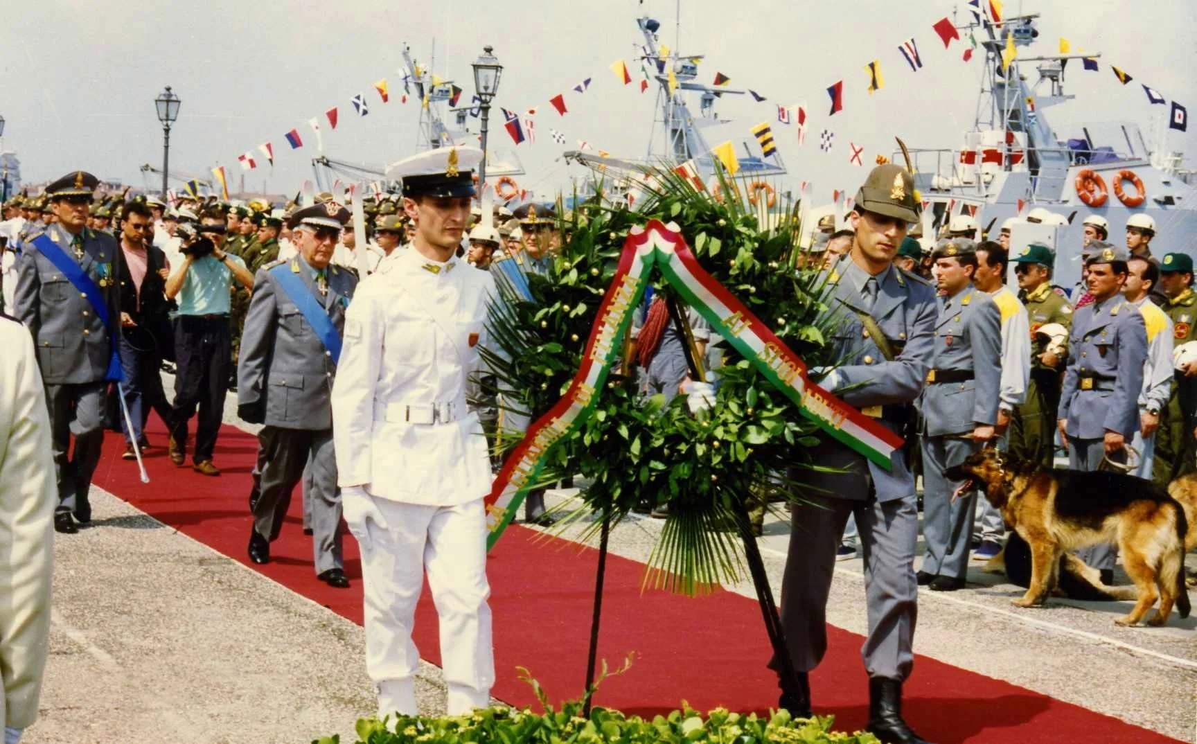 Festa del Corpo - giugno 1992 - Venezia Lido - presente nello schieramento il gruppo bandiera oltre a un’aliquota di sciatori e rocciatori della Scuola Alpina della G. di F. di Predazzo (61° Corso “Cadore”).