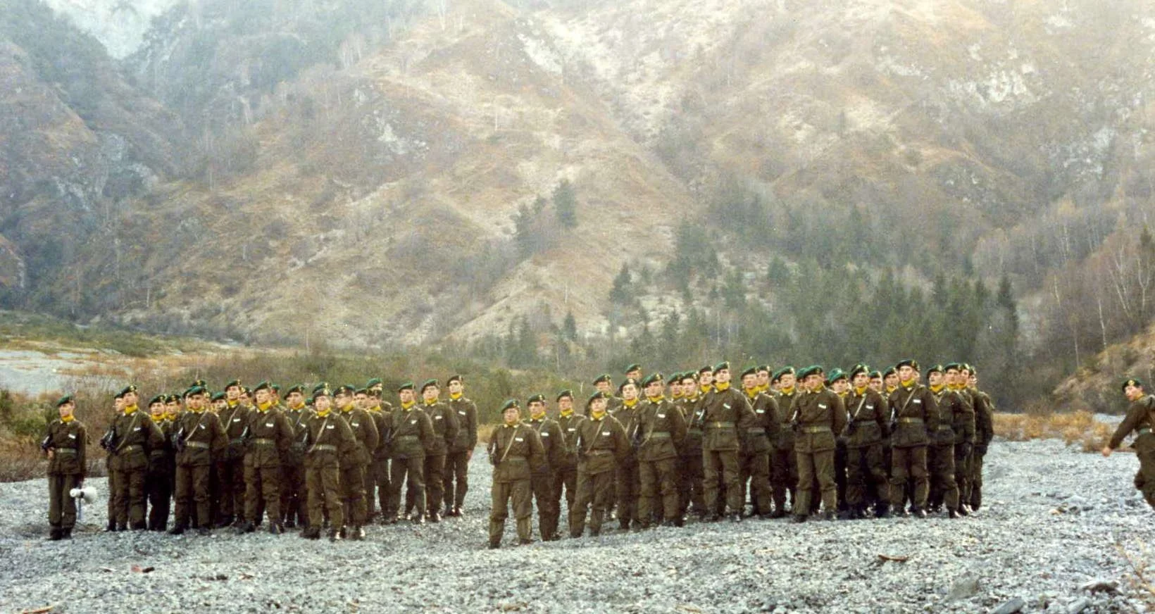 Alta Val Seriana - Onore (BG): poligono della Val del Dadi - fotografia al termine dell’esercitazione a fuoco reale condotta dal 35° Corso Allievi Ufficiali di Complemento della Compagnia Corsi Speciali dell’Accademia della Guardia di Finanza - gennaio 1992.